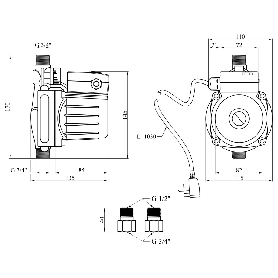 Потужність (P): 50 Вт — потужний насос, розрахований на роботу в системах з підвищеним навантаженням.