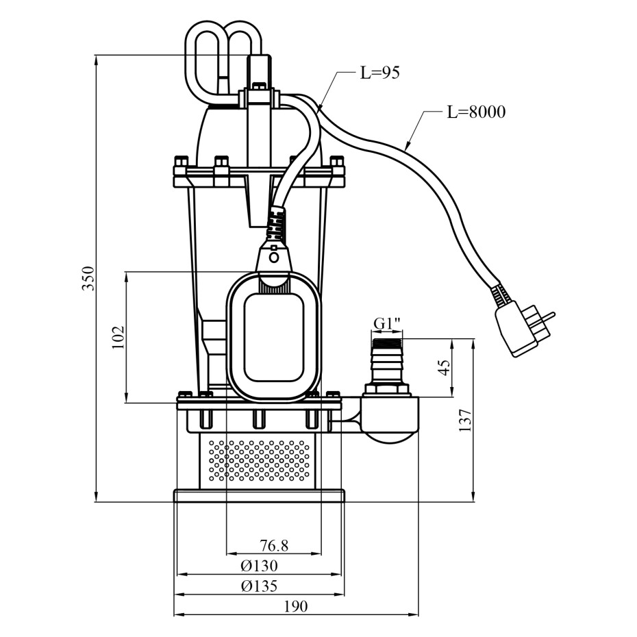 Комплектація: Насос, кабель з євровилкою, поплавковий вимикач, інструкція