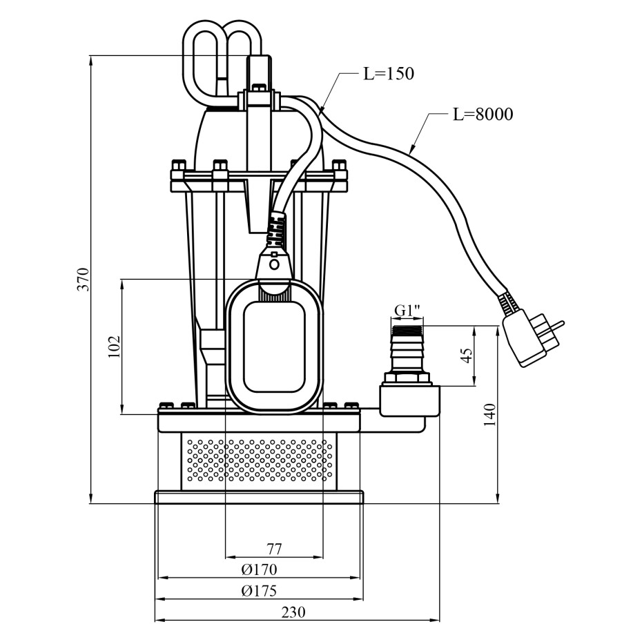 Комплектація: Насос, кабель з євровилкою, поплавковий вимикач, інструкція