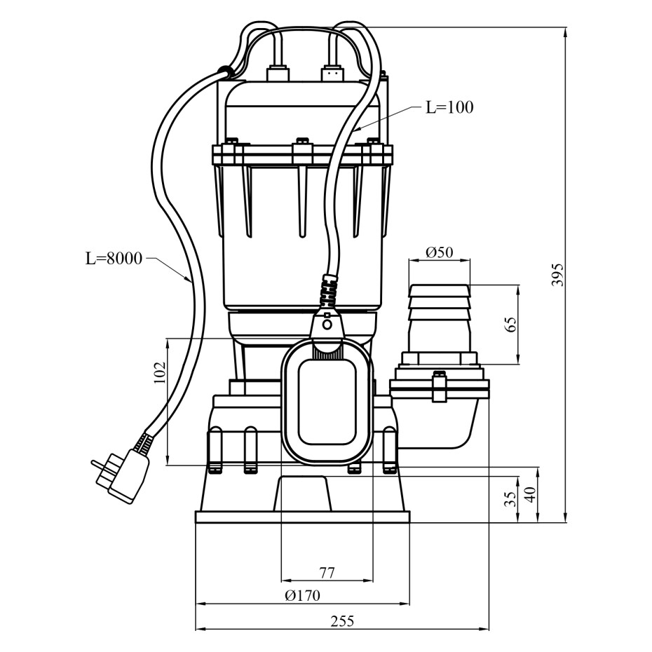 Комплектація: Насос, кабель з євровилкою, поплавковий вимикач, інструкція