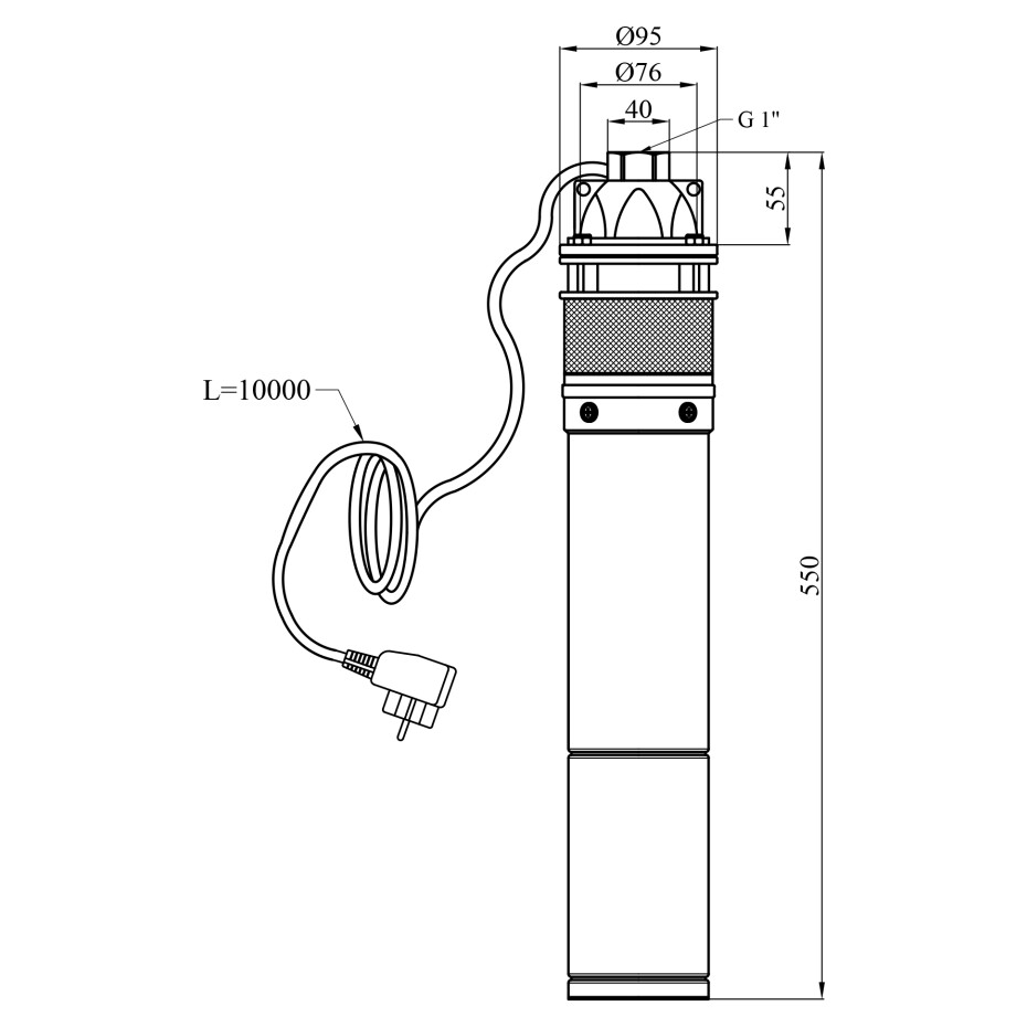 Насос глибинний відцентровий 3SKM 100 Hmax 48 м Qmax 50 л/хв P 750 Вт