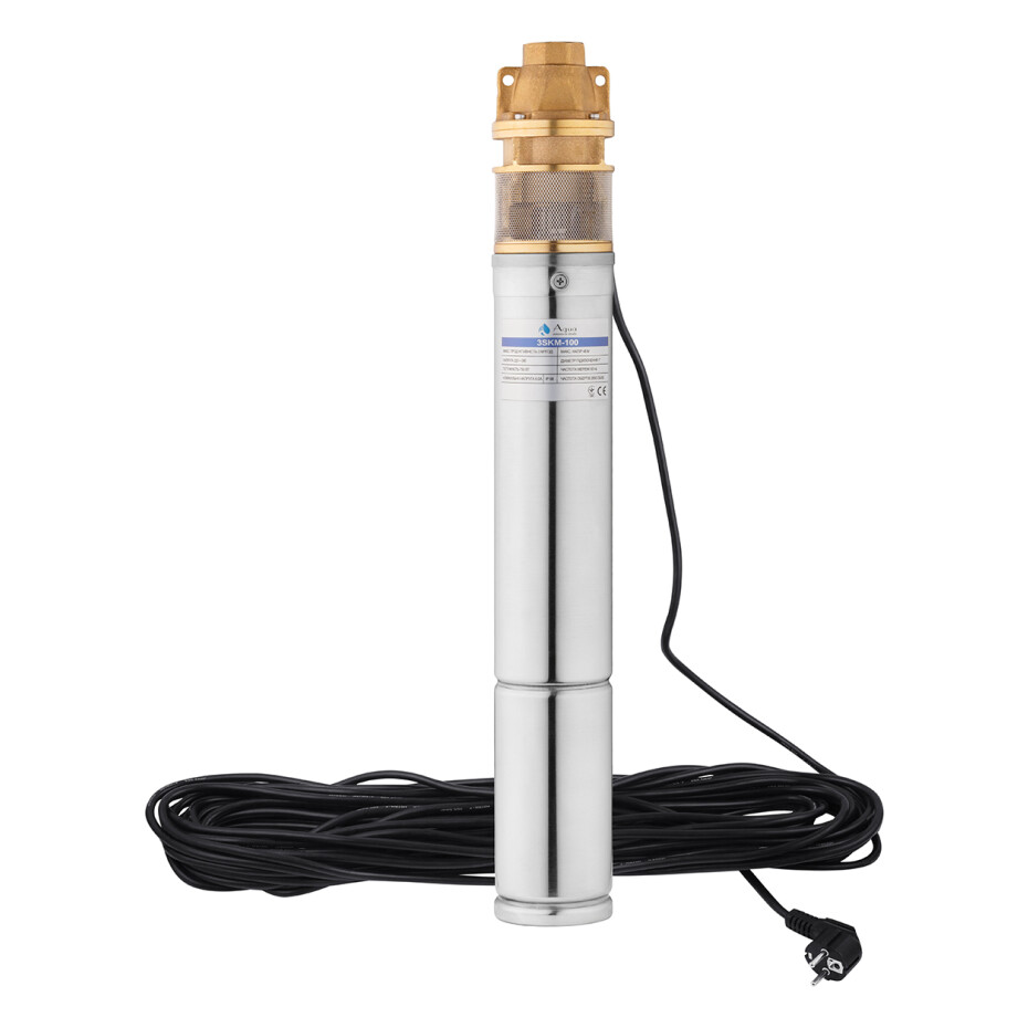 Глибинний відцентровий насос Agua 3SKM 100 призначений для підйому чистої води зі свердловин діаметром від 3 дюймів. Завдяки потужності 750 Вт та багатоступеневій конструкції, насос забезпечує стабільний напір до 48 м і продуктивність до 50 л/хв. Підходить для систем водопостачання приватних будинків, поливу, зрошення. У комплекті – кабель живлення довжиною 10 м.