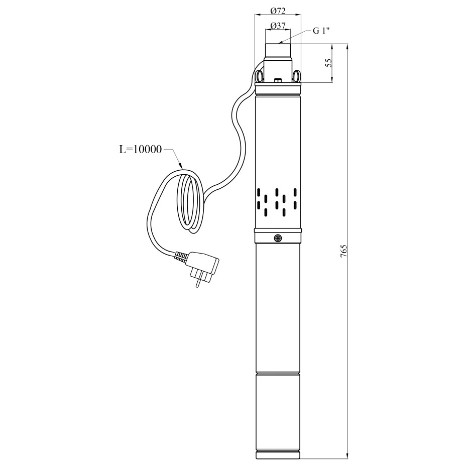 Модель 3SQGD1,2-100 має однофазний електродвигун потужністю 0,75 кВт, який забезпечує стабільну роботу і високу продуктивність. Насос розвиває напір до 120 м і подає до 1,2 м³/год, що робить його ефективним рішенням для подачі води на значну висоту і відстань.