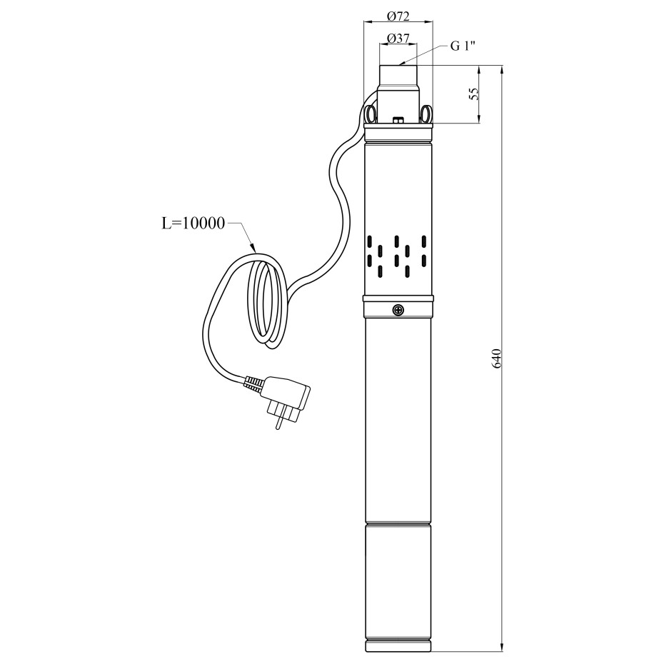 Модель 3SQGD1,2-50 має однофазний електродвигун потужністю 0,37 кВт, який забезпечує стабільну роботу і високу продуктивність. Насос розвиває напір до 80 м і подає до 1,2 м³/год, що робить його ефективним рішенням для подачі води на значну висоту і відстань.