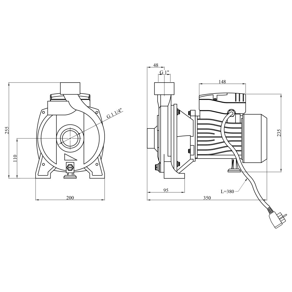 Опис до товару: Насос поверхневий відцентровий Agua CPM 180 Нmax 36 м Qmax 120 л/хв P 1500 Вт корпус чавун