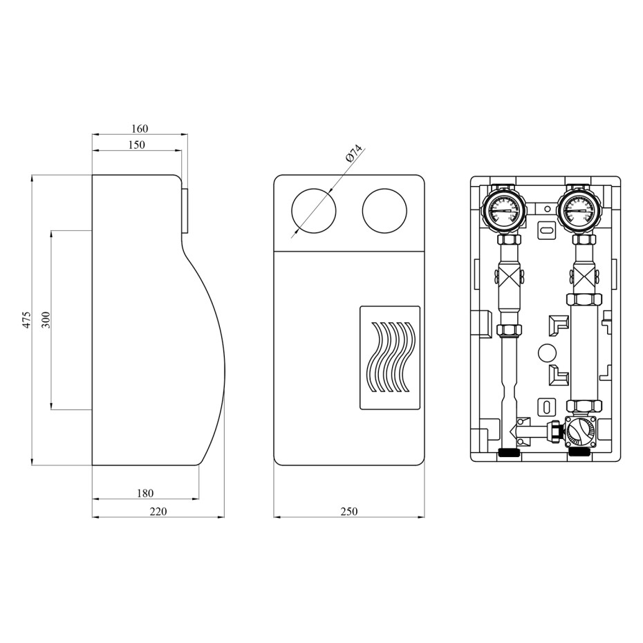 Комплектація: Насосна група з термостатом, трьохходовий змішувальний кран, ізоляція.