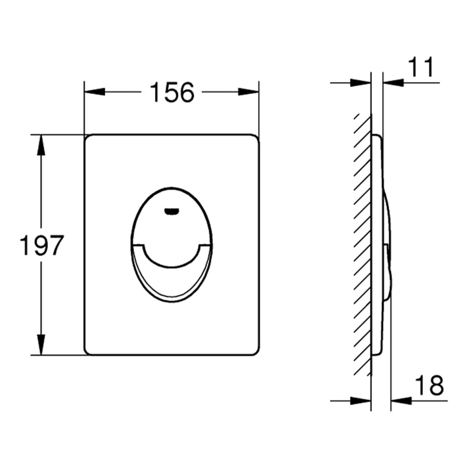 Виготовлена з міцного ABS-пластику, панель має матове хромоване покриття GROHE Long-Life Shine, яке стійке до подряпин і зберігає естетичний вигляд протягом багатьох років. Призначена для пневматичного зливного клапана та вертикального монтажу. Компактні розміри — 156 x 197 мм — дозволяють легко інтегрувати панель в будь-який інтер’єр.