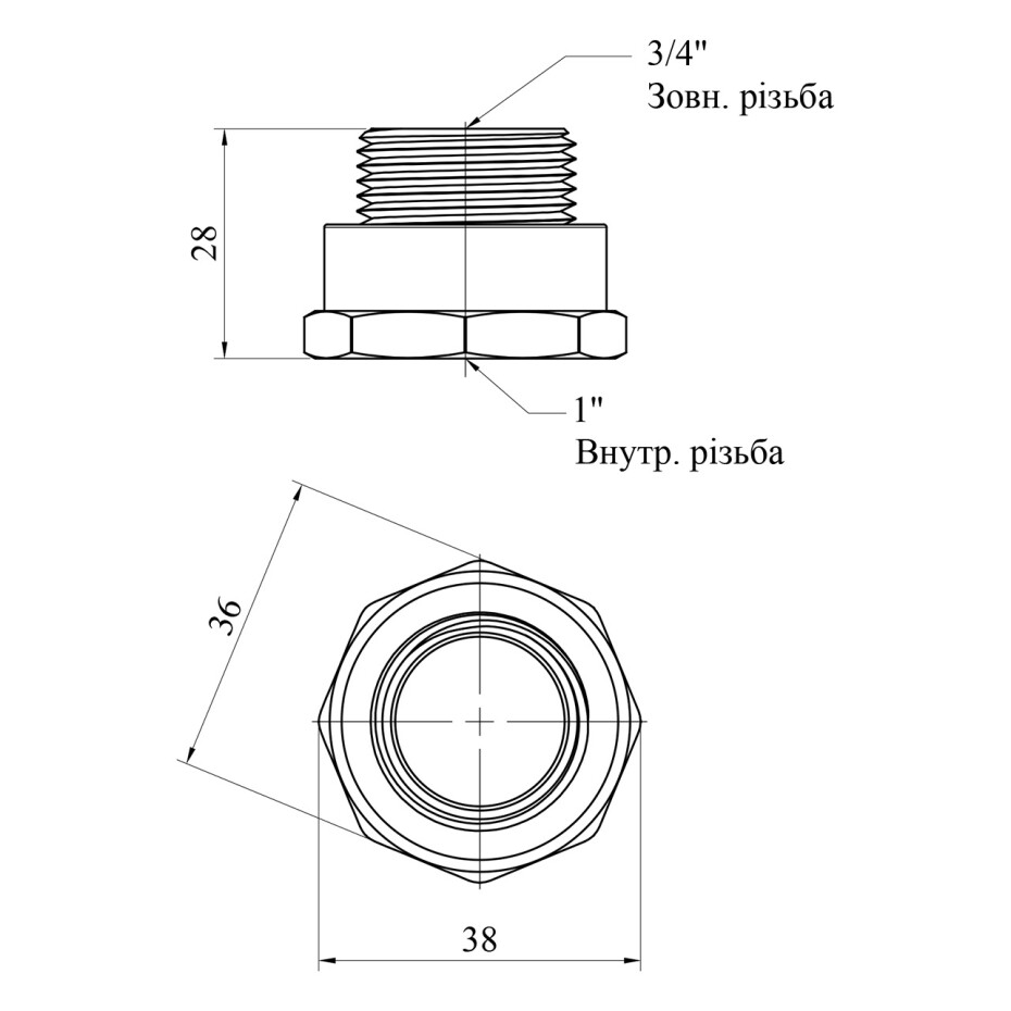 Опис до товару: Перехідник WaGa 1"х3/4" ВЗ нержавіюча сталь