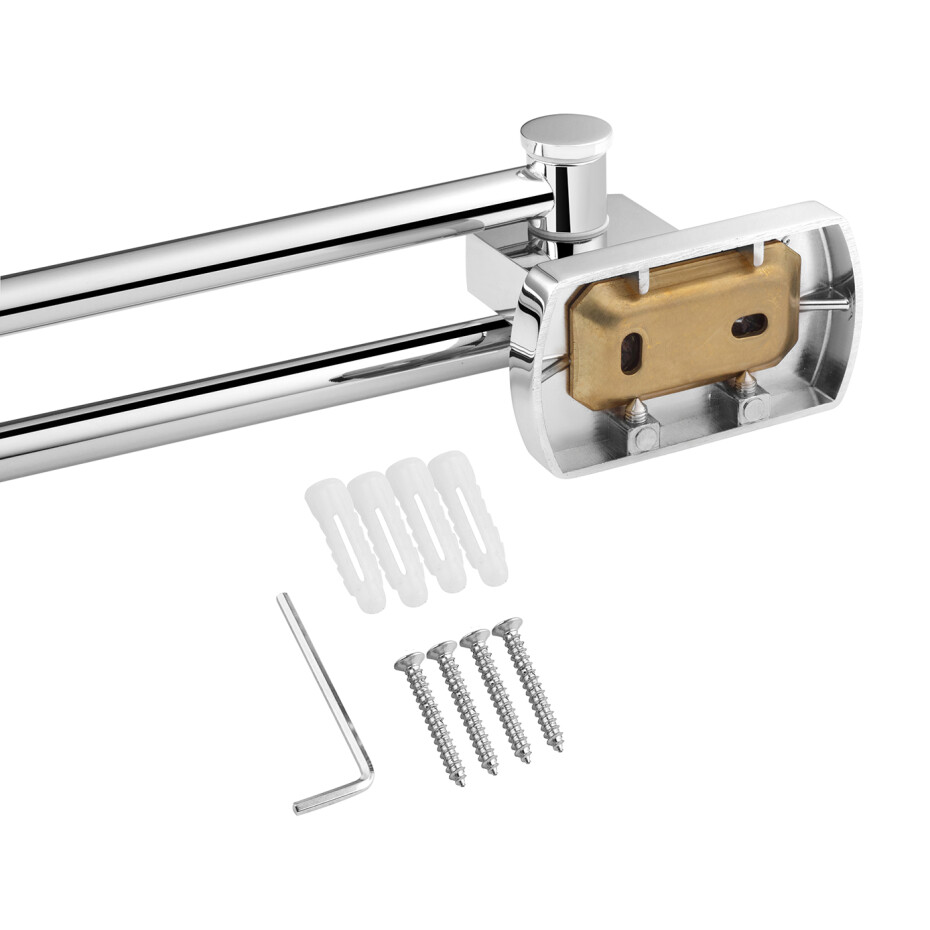 Тримач для рушників Kroner KRM Graz - C95614 — стильний і практичний аксесуар для ванної кімнати, що забезпечує зручне розміщення рушників. Виготовлений з міцних матеріалів з хромованим покриттям, стійким до вологи та корозії. Конструкція відрізняється надійністю і сучасним дизайном, який гармонійно впишеться в будь-який інтер'єр.
