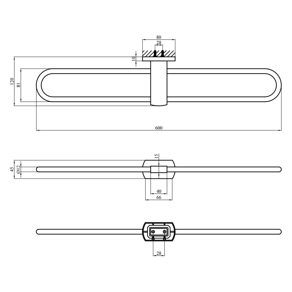 Габарити виробу (ВхШхГ), мм: 600х120х45