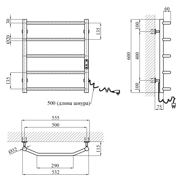 Комплектація: Рушникосушарка, кріплення, інструкція.