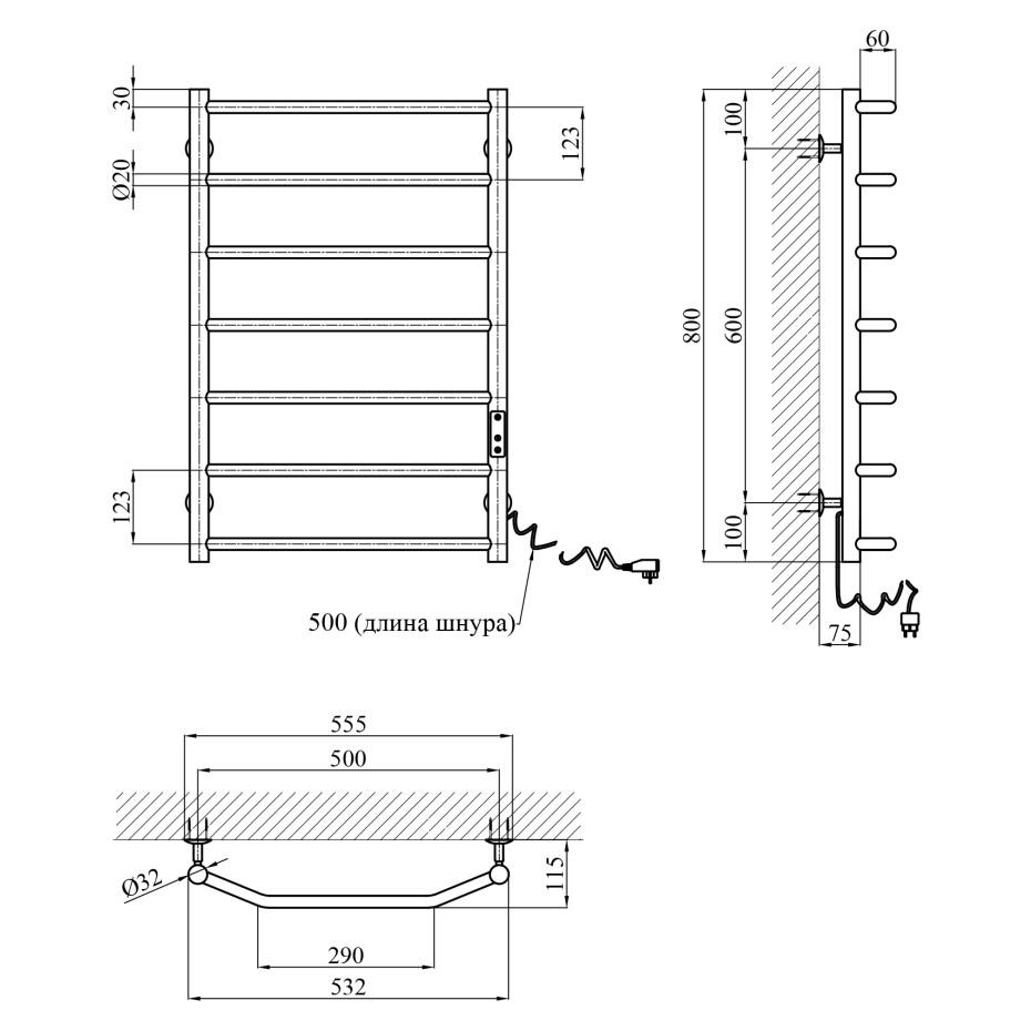 Комплектація: Рушникосушарка, кріплення, інструкція.