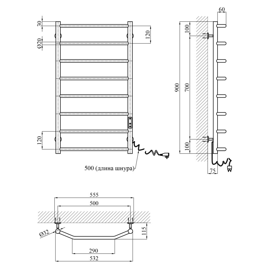 Комплектація: Рушникосушарка, кріплення, інструкція.