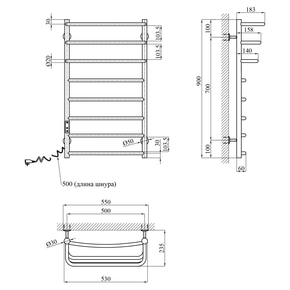 Комплектація: Рушникосушарка, кріплення, інструкція.