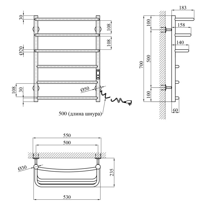 Комплектація: Рушникосушарка, кріплення, інструкція.