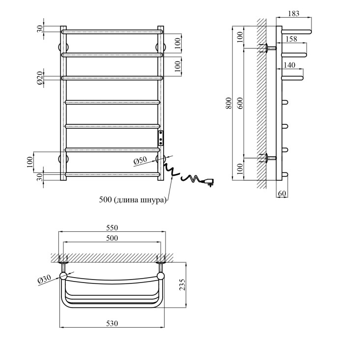 Комплектація: Рушникосушарка, кріплення, інструкція.