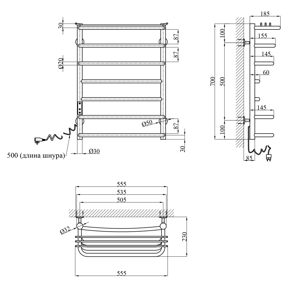 Комплектація: Рушникосушарка, кріплення, інструкція.