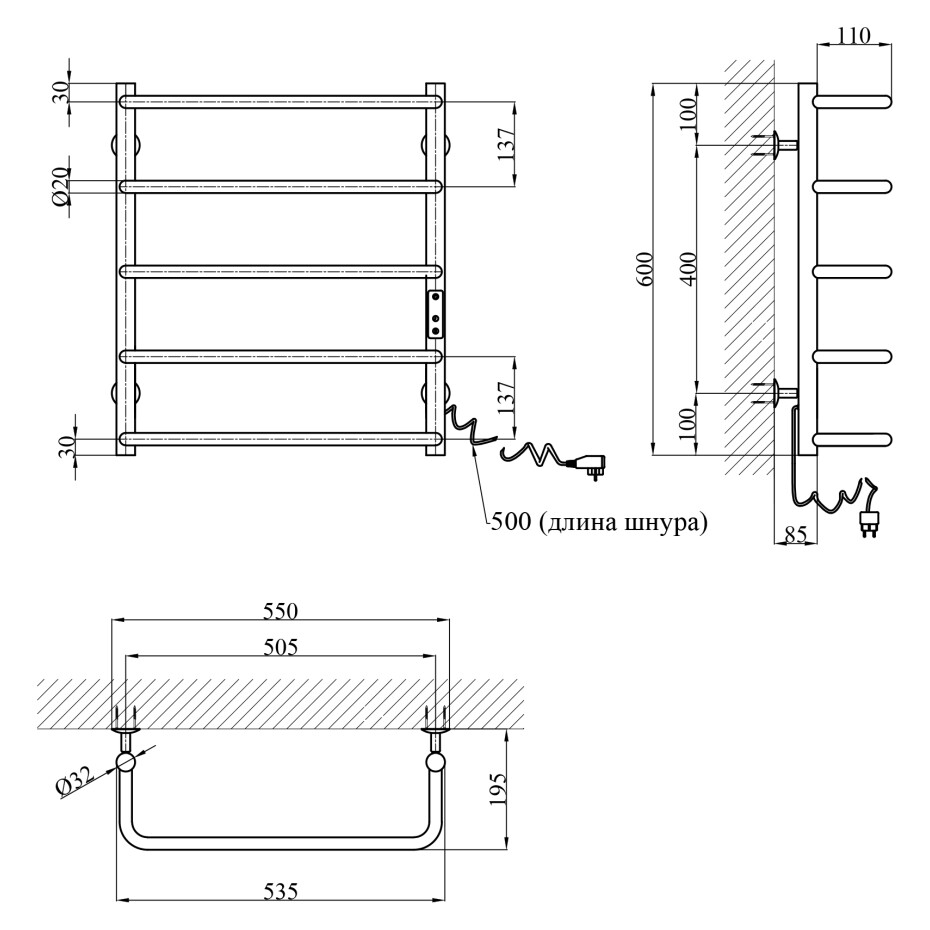 Опис до товару: Сушарка для рушників електрична Kroner KRP Stil ER600x500-5