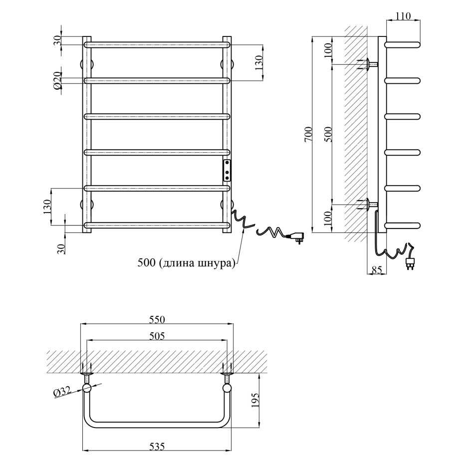 Опис до товару: Сушарка для рушників електрична Kroner KRP Stil ER700x500-6