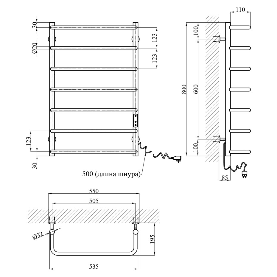 Комплектація: Рушникосушарка, кріплення, інструкція.