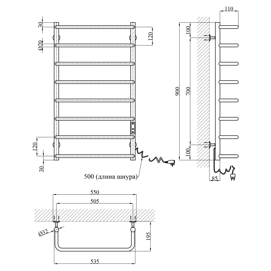 Комплектація: Рушникосушарка, кріплення, інструкція.