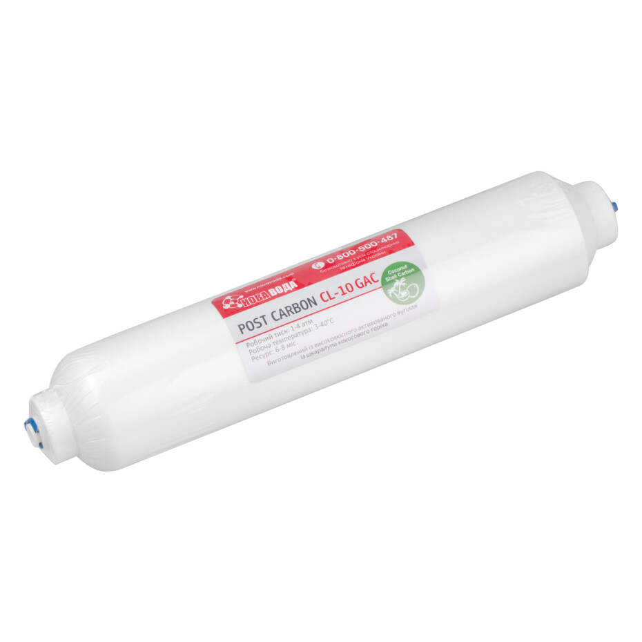 Опис до товару: Постфільтр вугільний Нова Вода CL10-GAC-QC