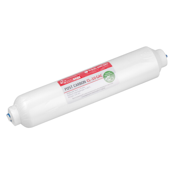Постфільтр CL10-GAC-QC — це фінальний етап очищення у системах зворотного осмосу. Він встановлюється після мембрани для остаточного кондиціювання води, забезпечуючи її ідеальну чистоту та свіжість перед подачею у кран.