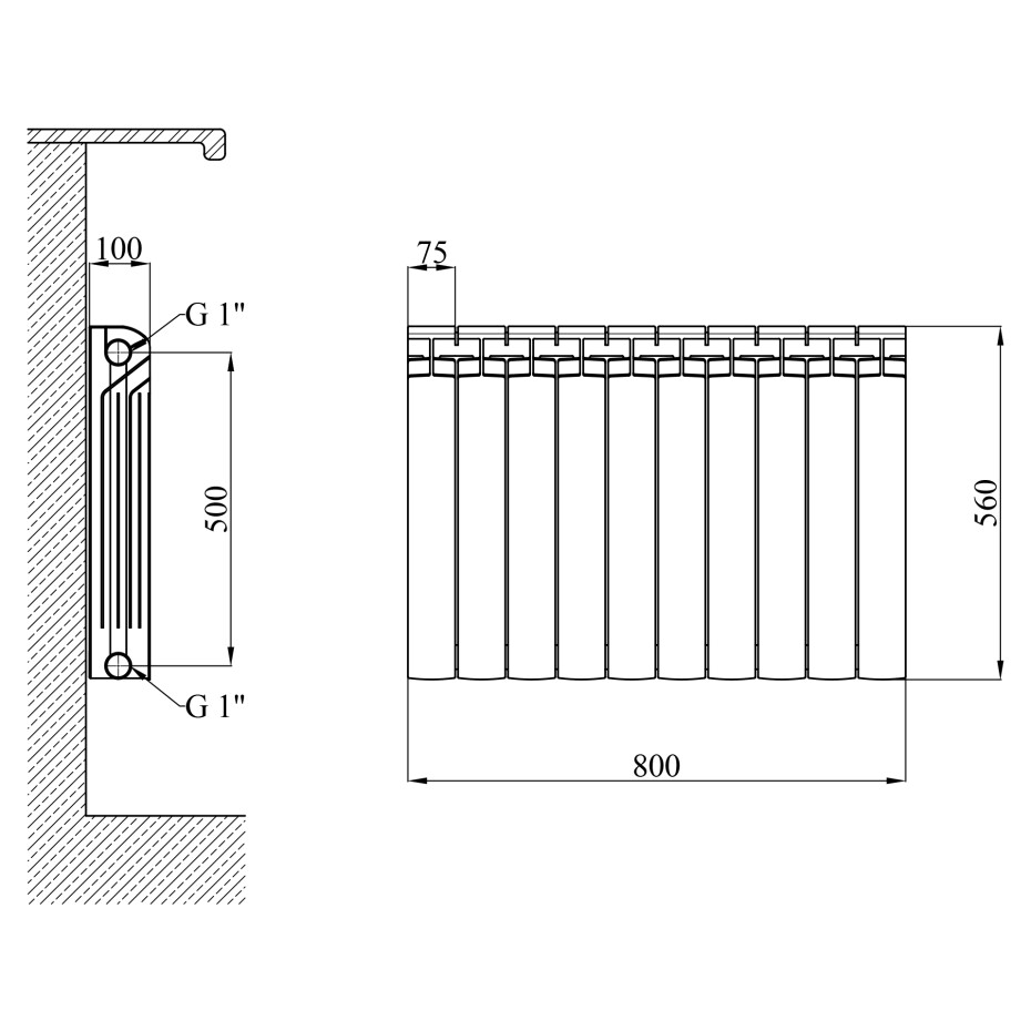 Опис до товару: Радіатор біметалевий Calor Perfect FB-500/100 20 бар 500х100 мм