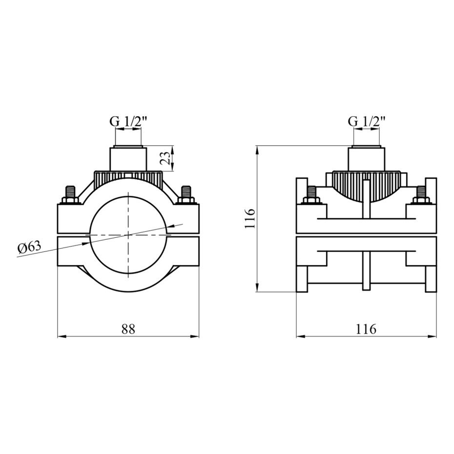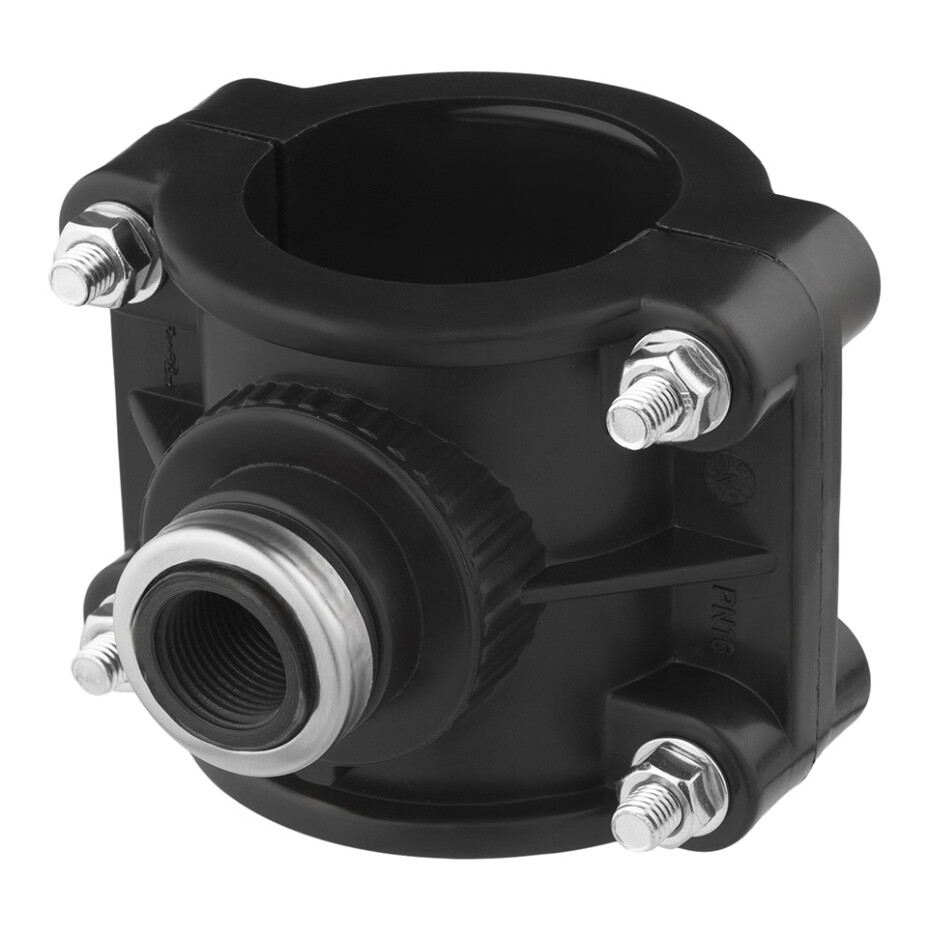 Сідлова врізка SantehPlast 63х1/2" – це надійне та просте в установці рішення для підключення до поліетиленових трубопроводів.