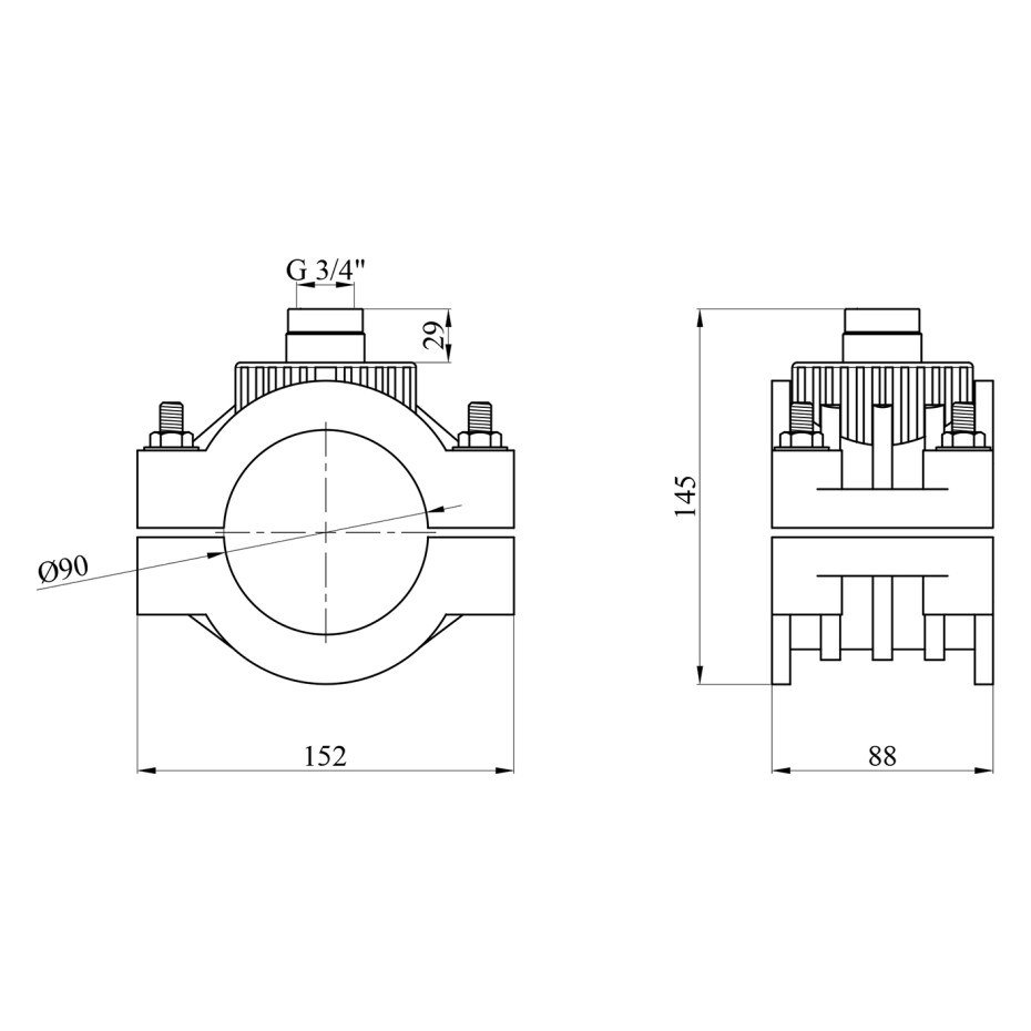 Діаметр підключення: 90х3/4"