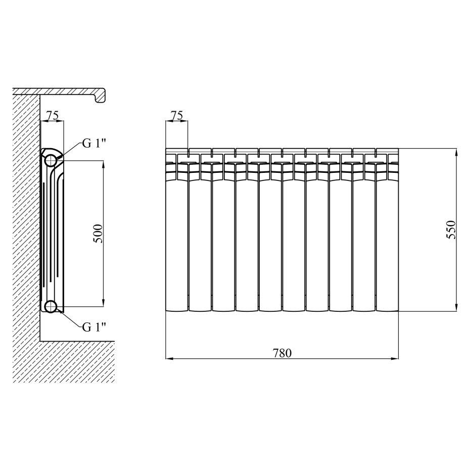 Для зручності підключення радіатор оснащений боковим підключенням з діаметром 1 дюйм і міжосьовою відстанню підключення 500 мм. Об'єм секції становить 0,2 літра, а вага секції без з'єднувального ніпеля – 1,51 кг, з ніпелем – 1,61 кг. Гарантія на радіатор складає 300 місяців, що підтверджує його високу якість і довговічність.
