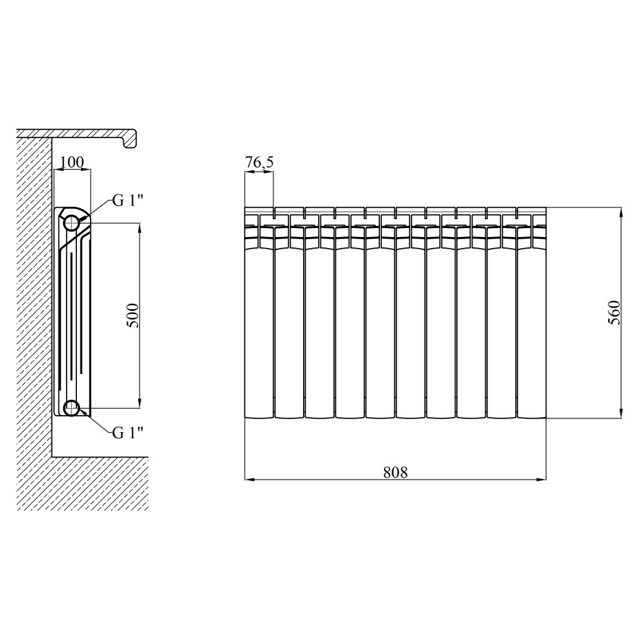 Секціі біметалевого радіатора Kroner Alma 500Р 500х80х100 мм