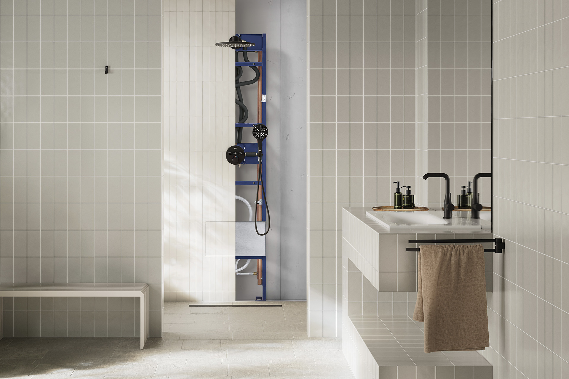 GROHE представив Rainshower Aqua Pure — душову систему з вбудованим фільтром, що очищує воду від хлору та інших домішок, покращуючи її якість і комфорт для шкіри та волосся. Поєднання фільтрації та різноманітних режимів струю (Rain, Rain+, Active тощо) робить цю систему орієнтованою на wellness-досвід.