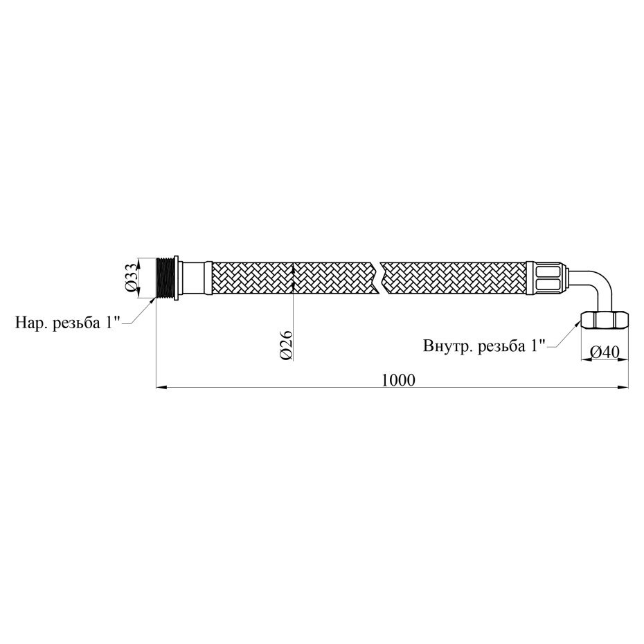Шланг виготовлений з нержавіючої сталі та має сталеву гайку, що забезпечує його довговічність і стійкість до механічних навантажень. Кутовий шланг має внутрішню і зовнішню різьбу, а також діаметр підключення 1"х1". Довжиною 100 см, цей шланг ідеально підходить для різних систем завдяки своїм характеристикам.