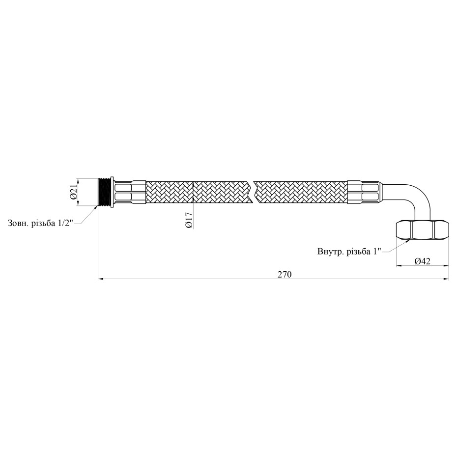 Матеріал оплетки: Нержавіюча сталь — стійка до корозії, механічних пошкоджень і перепадів тиску.
