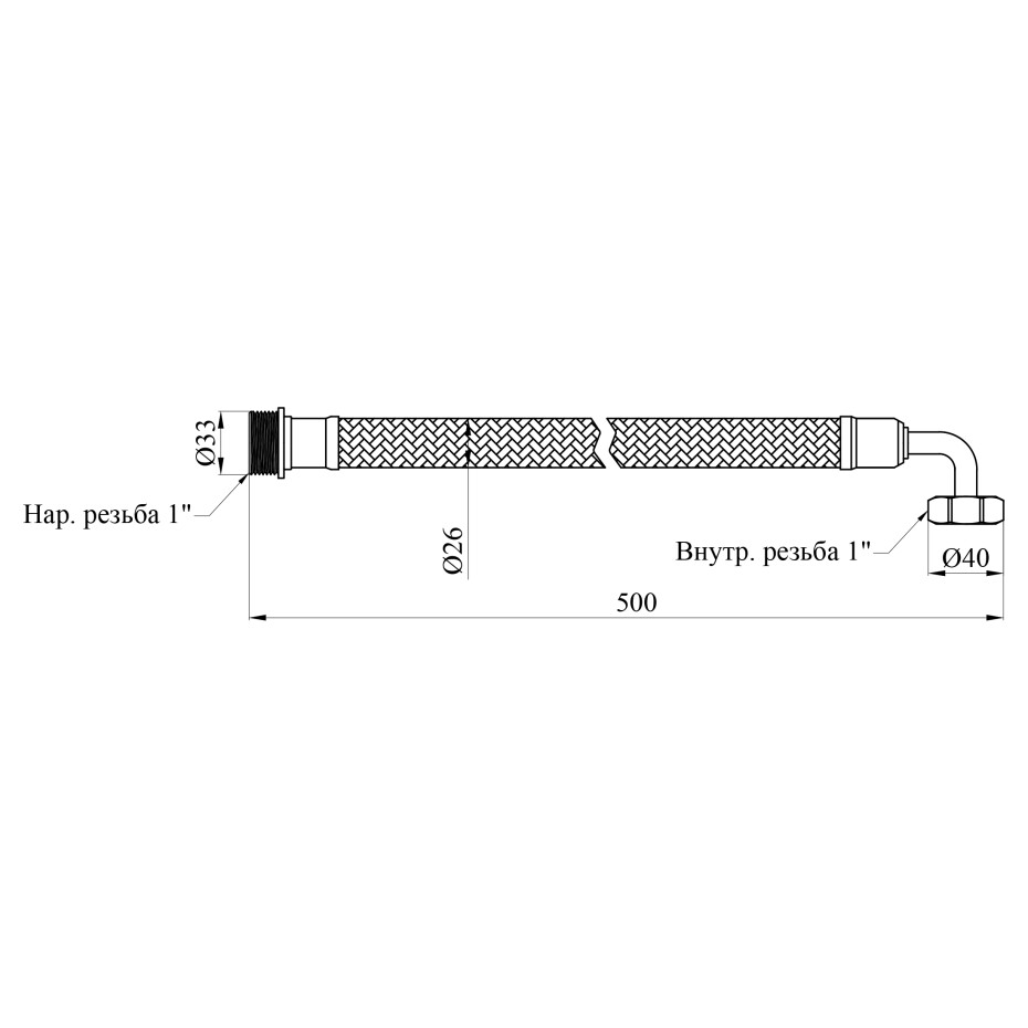Шланг виготовлений з нержавіючої сталі та має сталеву гайку, що забезпечує його довговічність і стійкість до механічних навантажень. Кутовий шланг має внутрішню і зовнішню різьбу, а також діаметр підключення 1"х1". Довжиною 50 см, цей шланг ідеально підходить для різних систем завдяки своїм характеристикам.