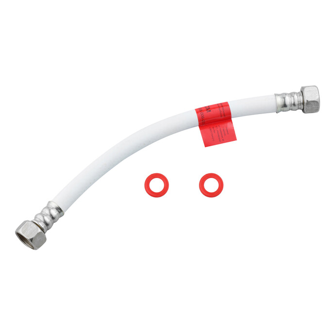 Опис до товару: Шланг газовий Nikiforov 1/2" ВВ 40 см з металевими гайками ПВХ білий