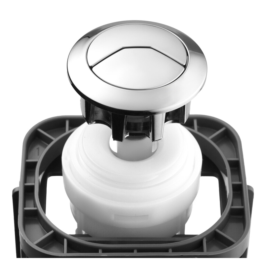 2. Економний злив: Дворежимна кнопка змиву (хромована) дозволяє обирати між повним і частковим зливом, що дає змогу зменшити витрати води залежно від потреб.