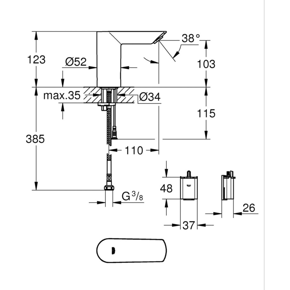Опис до товару: Змішувач безконтактний для раковини Grohe Bau Cosmopolitan E 36452000 без змішування