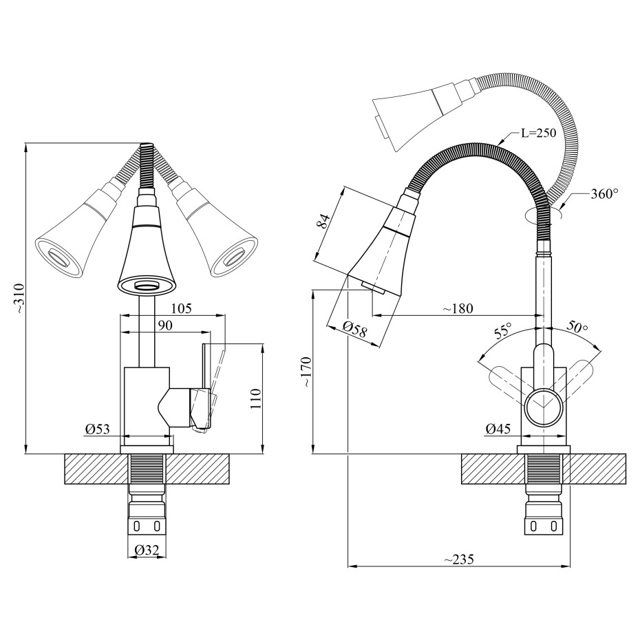 Тип виливу: Гнучкий/Поворотний