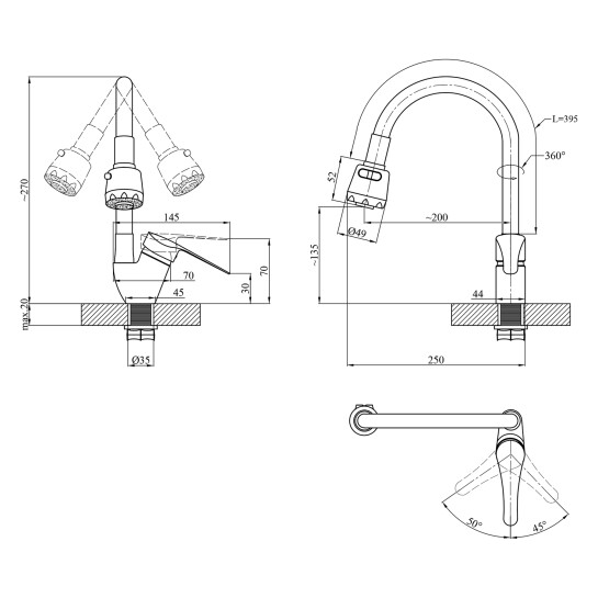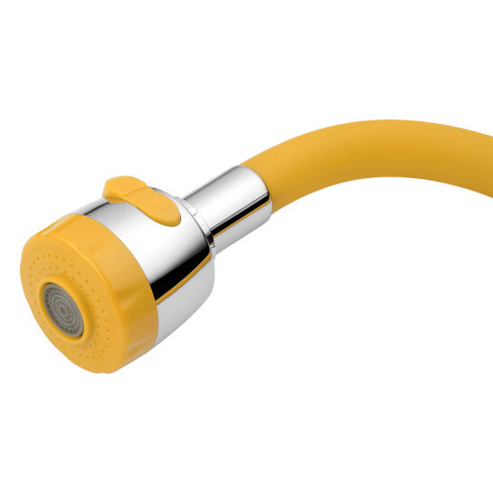 Особливо зручний гнучкий вилив, який забезпечує свободу маневрів і дозволяє спрямовувати воду в потрібне місце, що спрощує миття великих кухонних предметів. Змішувач також оснащений аератором з двома режимами подачі води - душовим та струменем, що дозволяє вибрати оптимальний варіант для різних потреб.