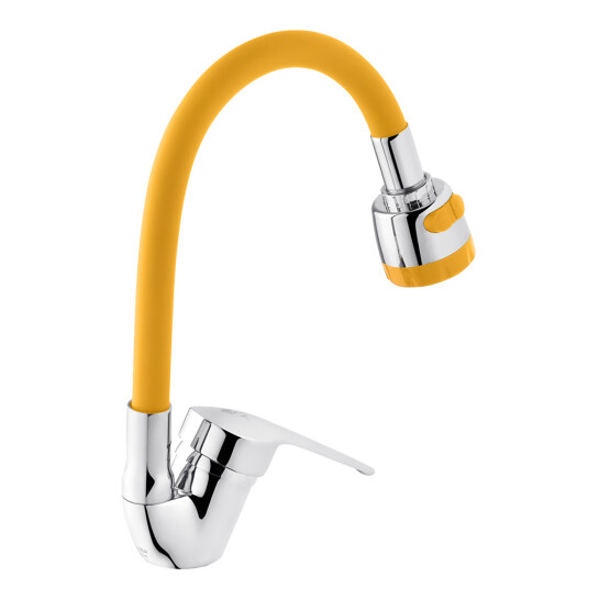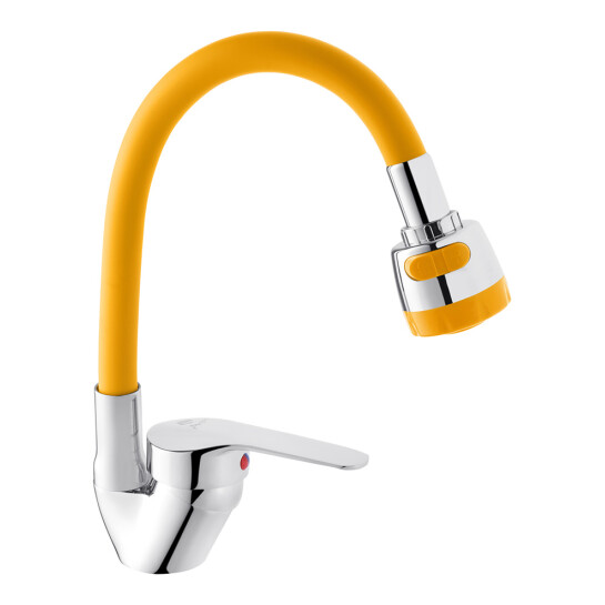 Змішувач для кухні Agua Sevilla - C039AMR - це ідеальне рішення для сучасних кухонь. Корпус виконаний з якісного силуміну, що забезпечує довговічність та надійність виробу. Вилив із силіконовим покриттям жовтого кольору не тільки надає змішувачу оригінального зовнішнього вигляду, але й робить його зручним для використання. Глянцева поверхня корпусу додає змішувачу шарму та легко очищається від забруднень.