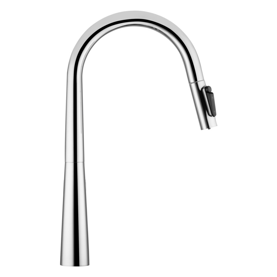 Модель оснащена висувним шлангом, який робить повсякденні завдання біля мийки значно зручнішими — миття посуду, наповнення великих місткостей і очищення раковини виконуються швидко і без зайвих зусиль. Практична кнопка перемикання режимів розташована прямо на висувній лійці, забезпечуючи інтуїтивне і комфортне управління потоком води одним натисканням.