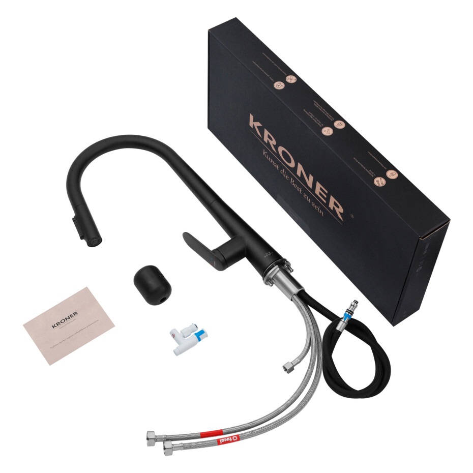 Змішувач Kroner Element 211569-3801 — багатофункціональне рішення для сучасної кухні, що поєднує стильний дизайн, зручність у використанні та інноваційні можливості. Оснащений висувною лійкою та системою подачі питної води через суміщений вилив, що дозволяє обійтись без додаткового крана.