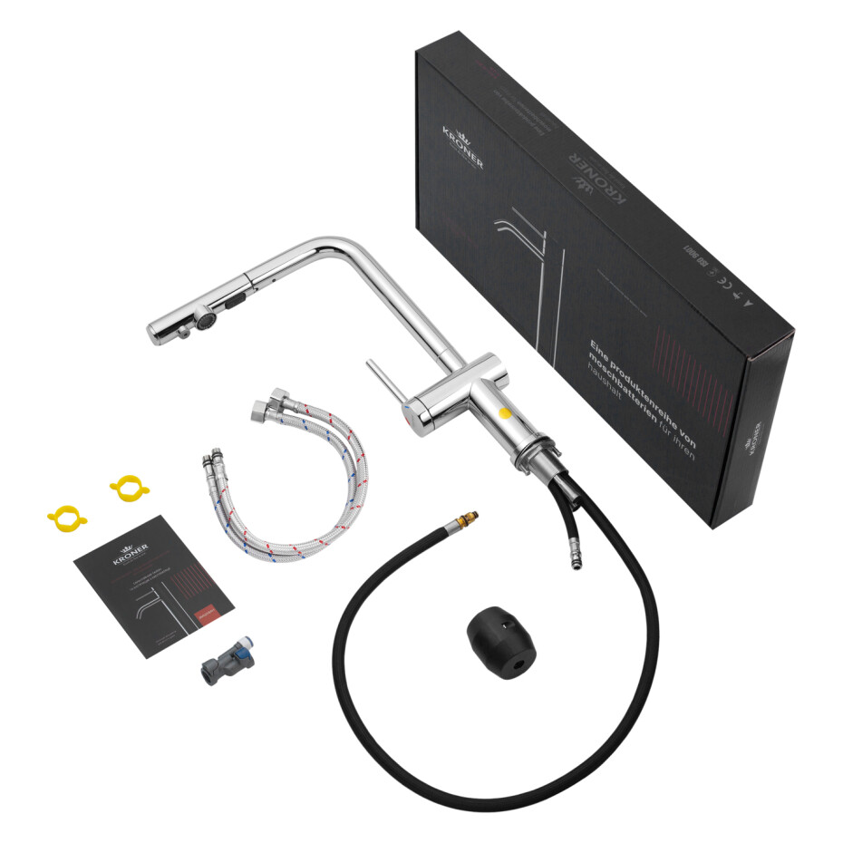 Змішувач для кухні Kroner KRP Kuche - C03839 (хром) — сучасний і технологічний кухонний змішувач з класичним хромованим покриттям і ефектним глянцевим блиском, який надає кухонному простору відчуття чистоти, акуратності та візуальної легкості. Він гармонійно вписується як в сучасні, так і в більш традиційні інтер'єри кухні.