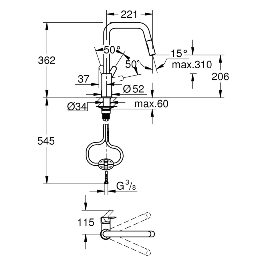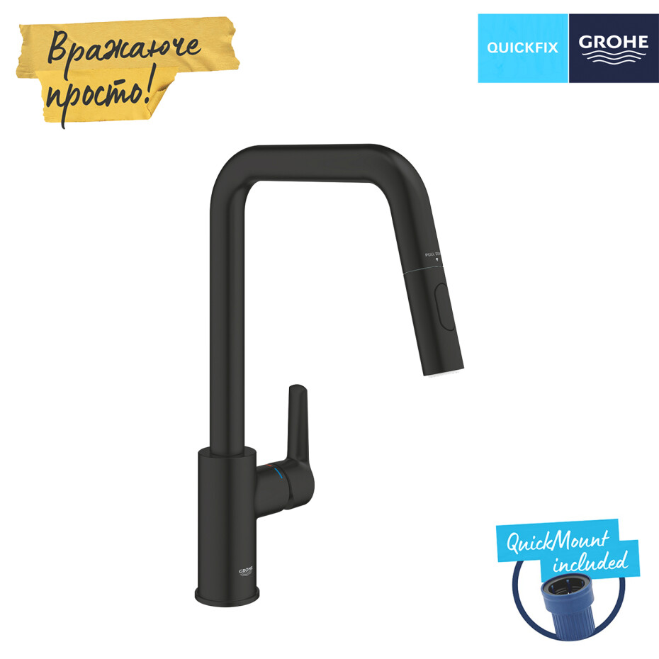 Опис до товару: Змішувач для кухні з висувним виливом Grohe QuickFix Start 306312430