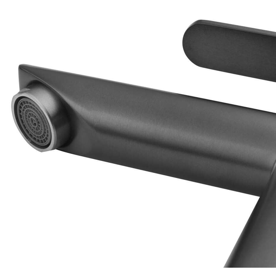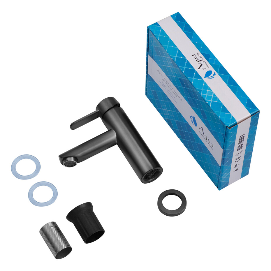 Agua Elposo - INOX010AM — стильний змішувач для раковини в сучасному графітовому кольорі, що надає інтер’єру вишуканого вигляду. Виготовлений із харчової нержавіючої сталі SUS 304, він поєднує естетику, гігієнічність та довговічність.