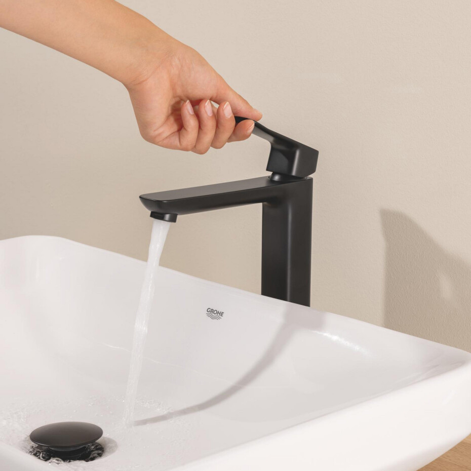 Змішувач для раковини Grohe QuickFix Dice XL-Size 1018922430 — ідеальний вибір для окремо розташованих раковин, де важливі не лише стиль і висота виливу, а й практичність. Змішувач виконаний у виразному чорному матовому кольорі, який підкреслює сучасний стиль ванної кімнати та зберігає бездоганний вигляд з часом завдяки зносостійкому покриттю GROHE Long-Life.