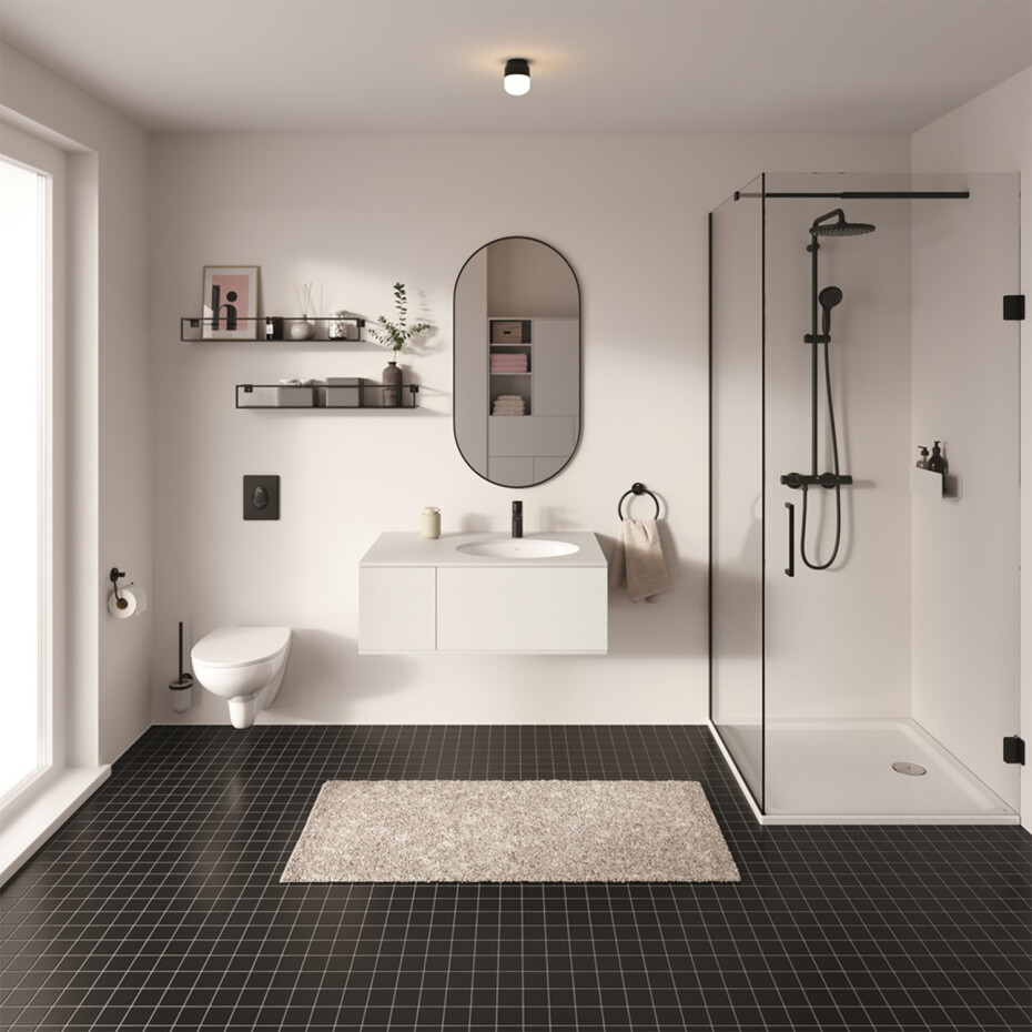 Система GROHE Water Saving обмежує витрату води до 5,7 л/хв, а налаштовуваний обмежувач потоку та температури дозволяє зменшити споживання ресурсів і підвищити безпеку у використанні.