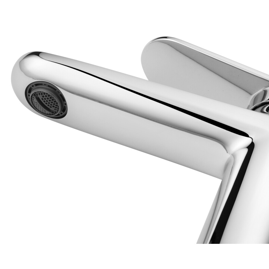 Змішувач для раковини Kroner Element 211110-0101 (хром) — елегантне і функціональне рішення для ванної кімнати в сучасному стилі. Дзеркально-гладка глянцева поверхня надає змішувачу виразний блиск і підкреслює чистоту інтер'єру, візуально роблячи простір більш, світлим і акуратним.